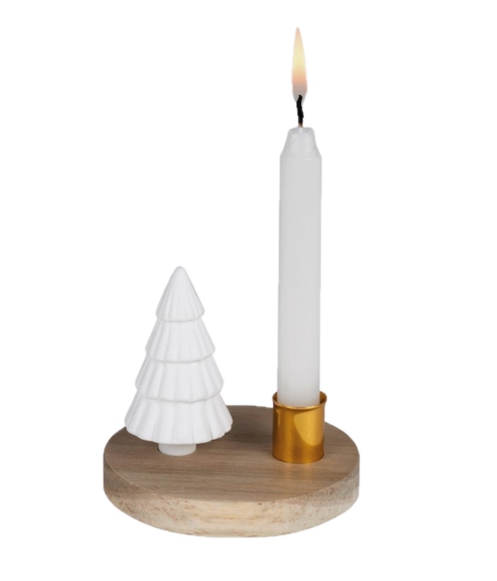 Het lichtje Tales of Light Guardian Angel van Räder is een lief klein kandelaartje voor in de winter. De houder is gemaakt van een rond houten voetje met daarop een met de hand gemaakte dennenboompje van mooi mat wit porselein en een koperen houder voor een potloodkaarsje. Een lief cadeautje om te geven.