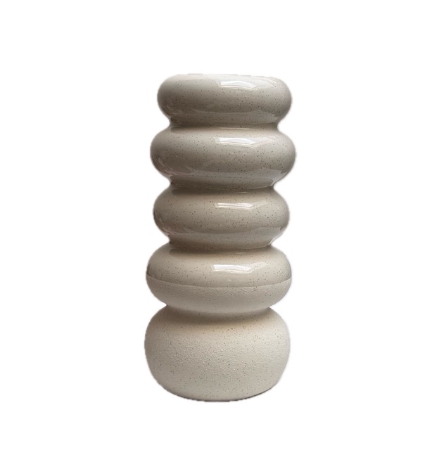 Prachtige keramieken vaas opgebouwd uit ringen. Deels mat, deels geglazuurd.
