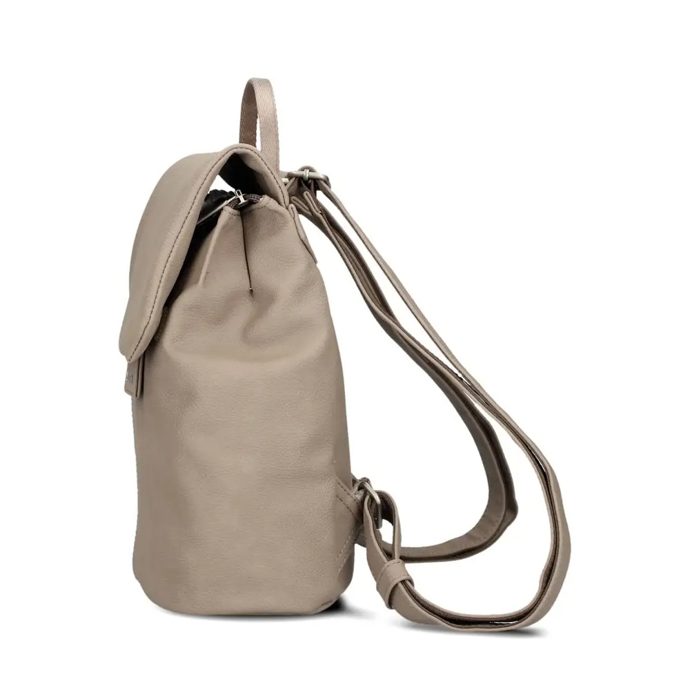 Stevige en zeer uitgewerkte rugzak die aan de bovenzijde, onder de klep sluit met een rits. Alle kleuren zijn gevoerd met een lichte voering zodat je goed kunt zien wat er in je tas zit. De tas heeft aan de binnenzijde 2 vakjes met rits , een telefoonhoesje en een extra doorgestikt vak voor Ipad of laptop. Verder heeft de rugzak verstelbare schouderriemen van 3 cm breed. De klep sluit met magneetjes. Ook de op achterkant bevind zich nog een extra vak met rits, om veilig op te bergen.